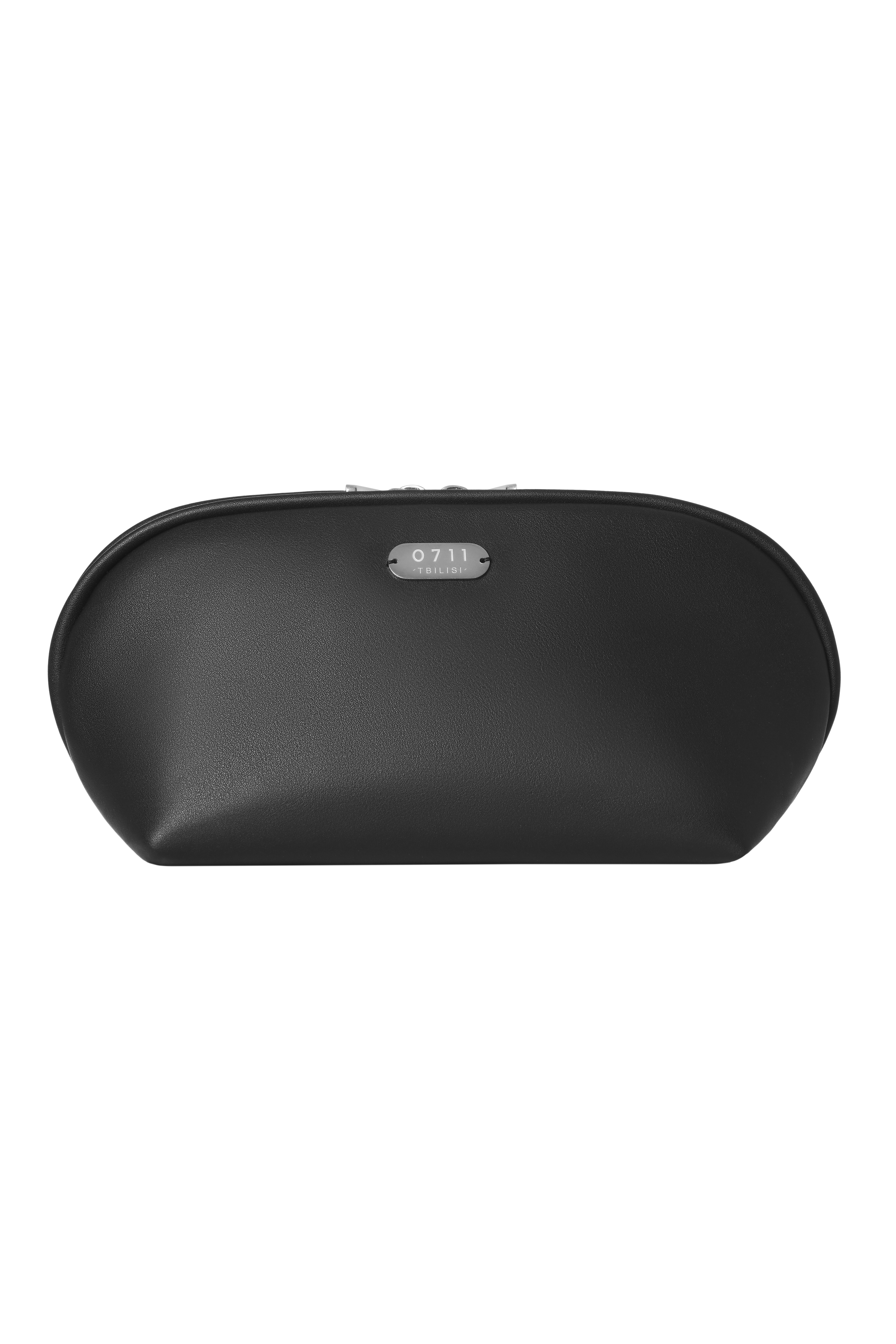 Black cosmetic pouch with signature zip closure, logo at the front & soft corners.