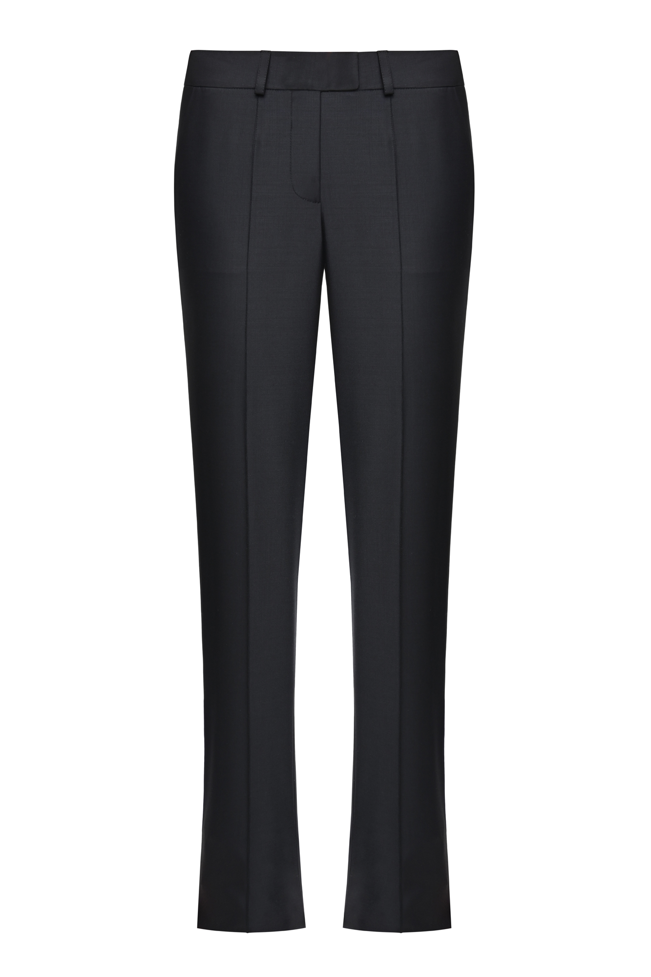 Mid-rise skinny pants in recycled wool, featuring decorative stitching, functional pockets, and a front zipper fastening for a sleek, polished finish.